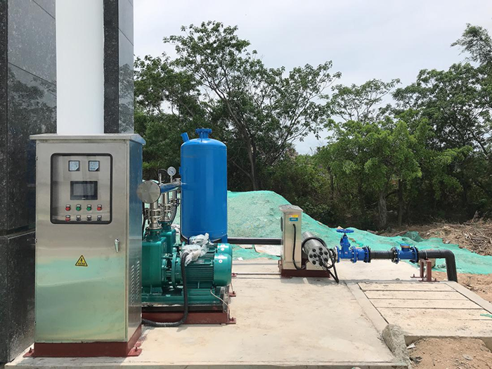 合作的實施方案為在大亞第三水質(zhì)凈化廠(二期)出水點增設(shè)恒壓供水系統(tǒng)中水提取泵、紫外線消毒設(shè)備消毒罐及中水管道等中水回用設(shè)施,將生產(chǎn)的中水引入家寶公司停車區(qū)域取水點位置實現(xiàn)為道路灑水車加水。方案對現(xiàn)有設(shè)施的改造難度小,易于實施,風險可控。